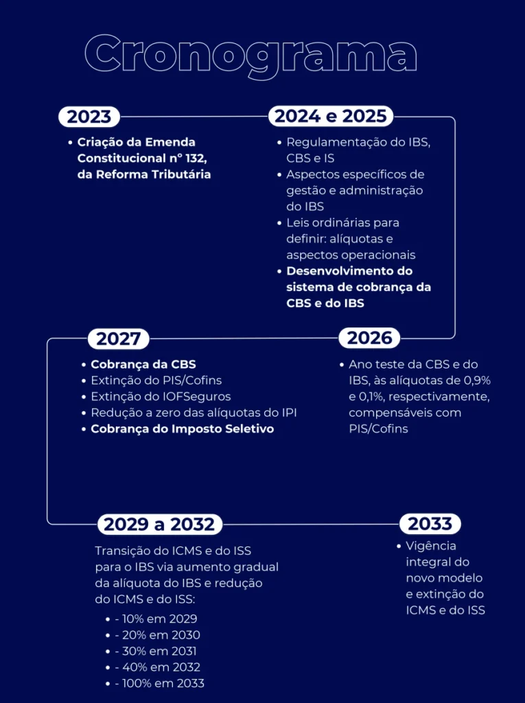 O cronograma detalhado da transição da reforma tributária inclui:
